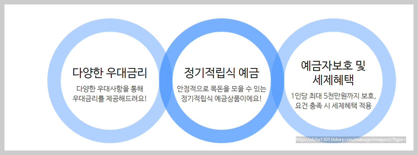 > 적금 가입 후 만기까지 유지하면 평잔에 따라 우대금리를 차등 적용해 줍니다. 평균 잔액을 넣어놔야 하기 때문에 다른 곳에 투자처보다 유리하거나, 정말 사용할 자금을 잠시 묶어놔야 할 때는 유리할 수 있을 것 같습니다.